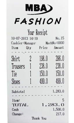 • COMPANY LOGO, COMPANY NAME , TELEPHONE AND ADDRESS CAN BE PRINTED ON RECEIPT